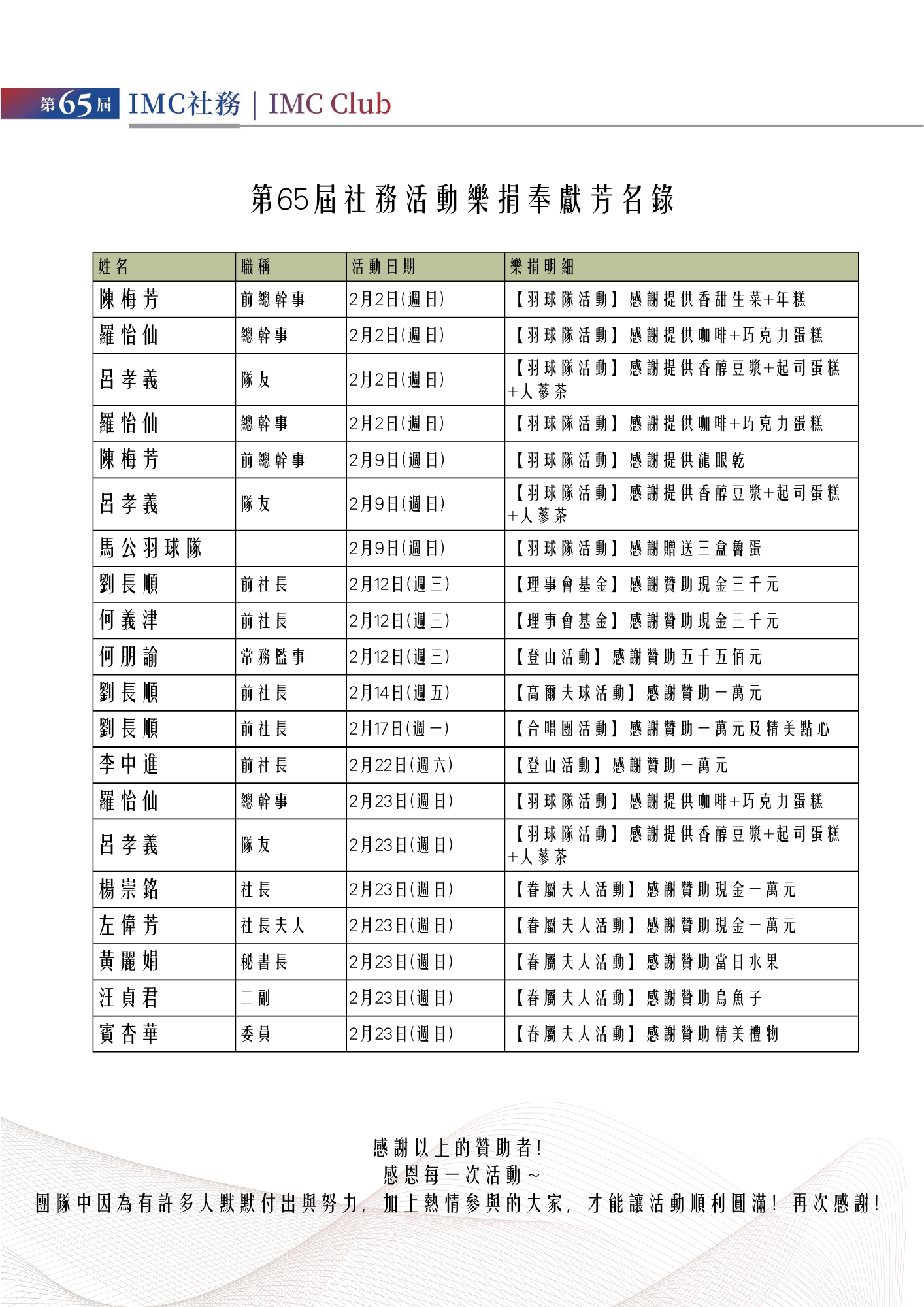 IMC 台北社 贊助芳名錄